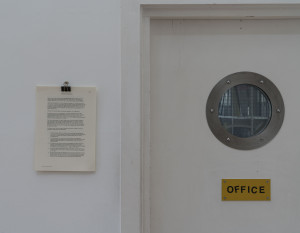 In the exhibition these concerns play out through a meeting of critical practices, ranging from the material to the performative, and through interventions into the hosting organisation that question and negotiate institutional routines and behaviours. Beyond the resounding dialogues between the works, the exhibition is choreographed through sound, lighting, a floor work and scent to create intersection points between shared infrastructures.