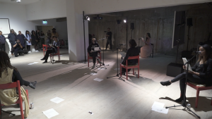 This performance extends out of Boswell’s exhibition The Space Between Things at Autograph, London (2019). This performance was a proposal for women in the artist’s circle to navigate what it means to read together, to share space and each other’s gospels.