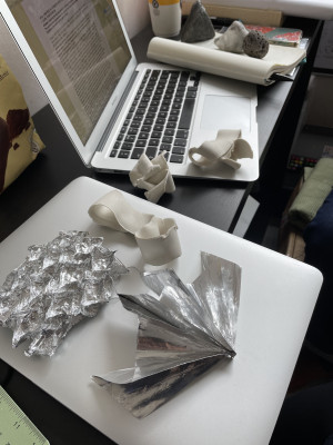I plan to structure the research with a web page and share it with other visual artists working with the body / objects, to share and encourage points of concern facing each other. I will be inviting around five people to join workshops through which we will learn makeup/special effects and cutting/sewing techniques, to allow us to try new formative languages with a sculptural aspect. I look forward to the expansion of the area of costume. The work will be represented in poems, object making and performance.”