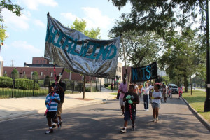- iPad with Cauleen Smith’s “In The Wake” Banner, “No Wonder I Go Under”