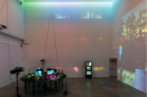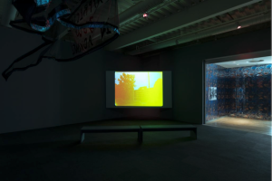 “Through films, objects, and installation, Give It or Leave It offers an emotional axis by which to navigate four distinct universes: Alice Coltrane and her ashram, a 1966 photoshoot by Bill Ray at Simon Rodia’s Watts Towers, Noah Purifoy and his desert assemblages, and black spiritualist Rebecca Cox Jackson and her Shaker community. These locations, while not technically utopian societies, embody sites of historical speculation and radical generosity between artist and community. In reimagining a future through this mix, Smith casts a world that is black, feminist, spiritual, and unabashedly alive.” – Cauleen Smith: Give It or Leave It, Institute of Contemporary Art, University of Pennsylvania, 2018