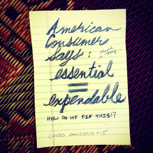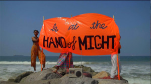 “My banners take up the form of protest, but they’re really an invitation for personal meditation and introspection. I deliberately make my work that way, so that it can’t easily be coopted by a political agenda. I appropriate forms from social institutions that organize masses, and then I undermine them. Groups of people can find common ground, and yet individuals can still maintain and question their own position—as opposed to me telling anyone what to think. Recently, Avery Young] borrowed text from the banners to make a gospel song. It was profound!” – Cauleen Smith on [how art facilitates protest and introspection.