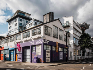 The Showroom’s Mural Commission is a unique project for artists to activate the building’s emblematic facade. For this second intervention, artist Simnikiwe Buhlungu references strolling as a form of knowledge production and uses text, textile and interactive sound installations to communicate ideas of gathering through a call and response with local communities.